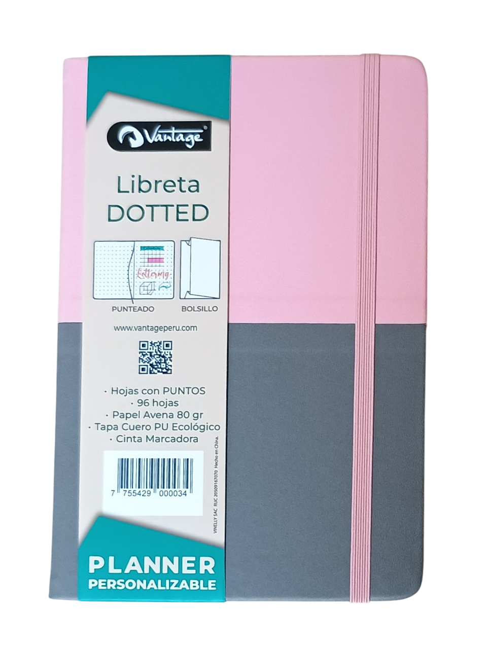 Contiene una hoja de datos personales, una hoja de directorio telefónico, liga, un marcador de página, un bolsillo interno y un mini planner personalizable para todos los meses del año.
